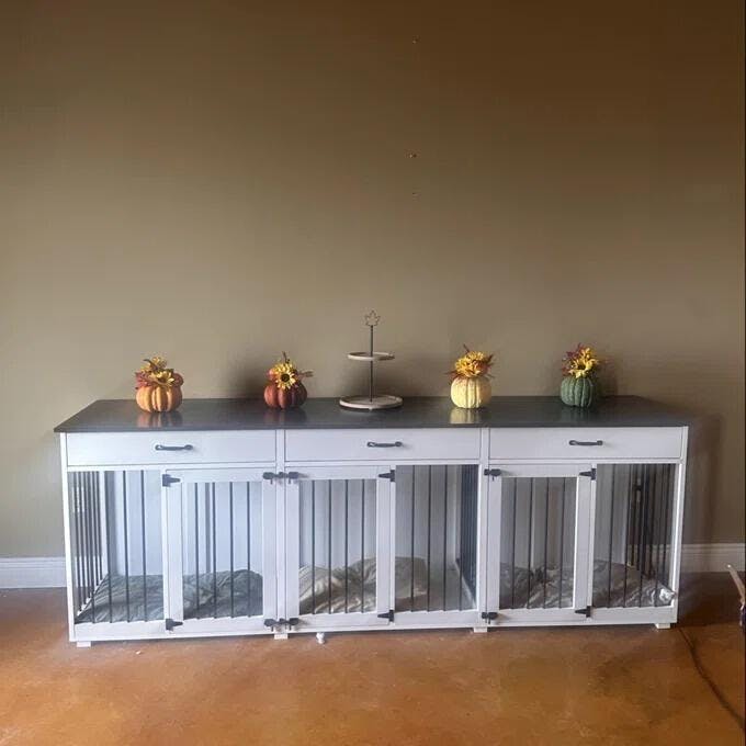 The Eudora Crate is designed for homes that need expansive capacity without sacrificing structure or refinement. Its elongated silhouette, wide top surface, and furniture-grade construction allow it to function as both a secure dog enclosure and a commanding console or media piece. Built to support multi-dog households or dogs that benefit from clearly defined space, Eudora introduces order, balance, and utility at scale.