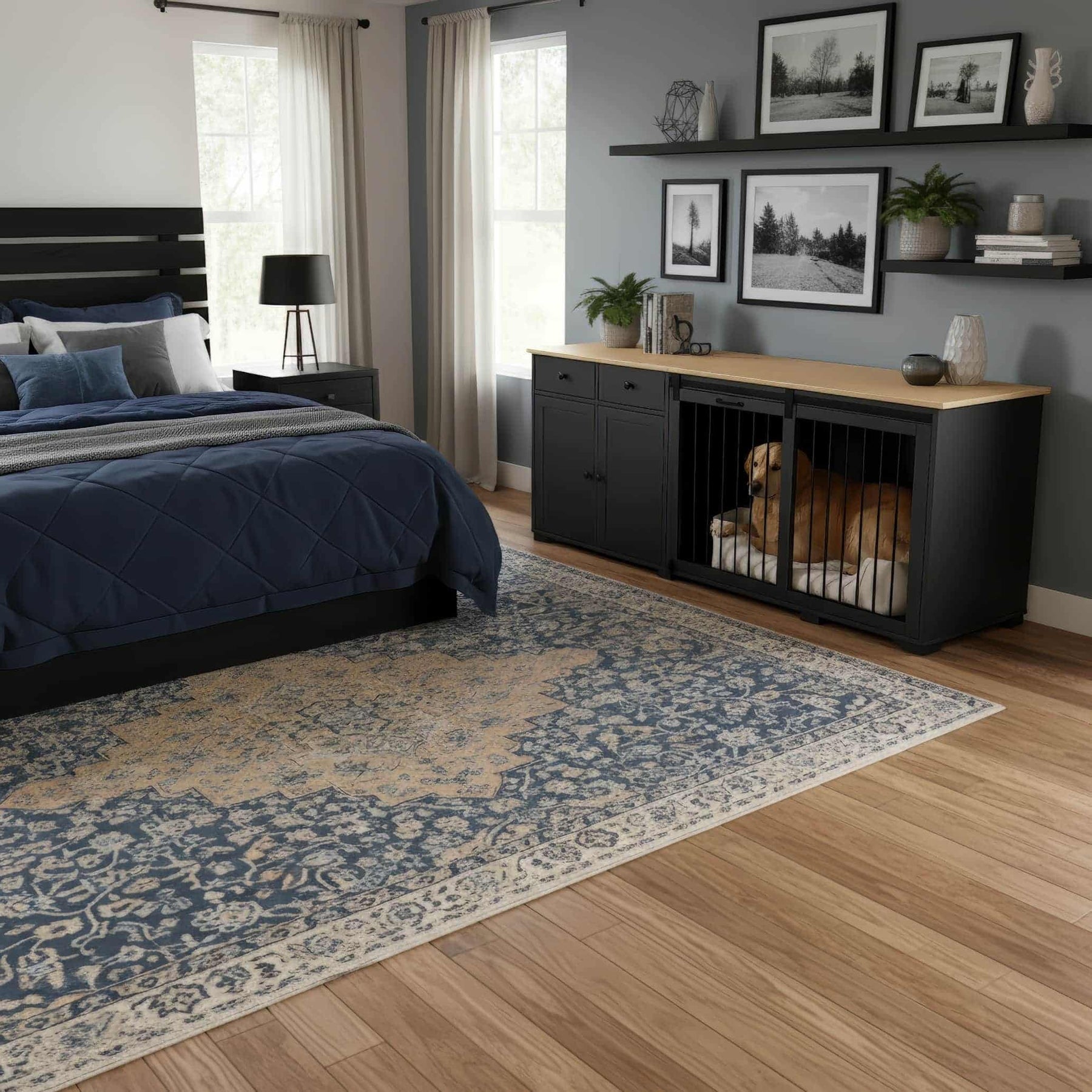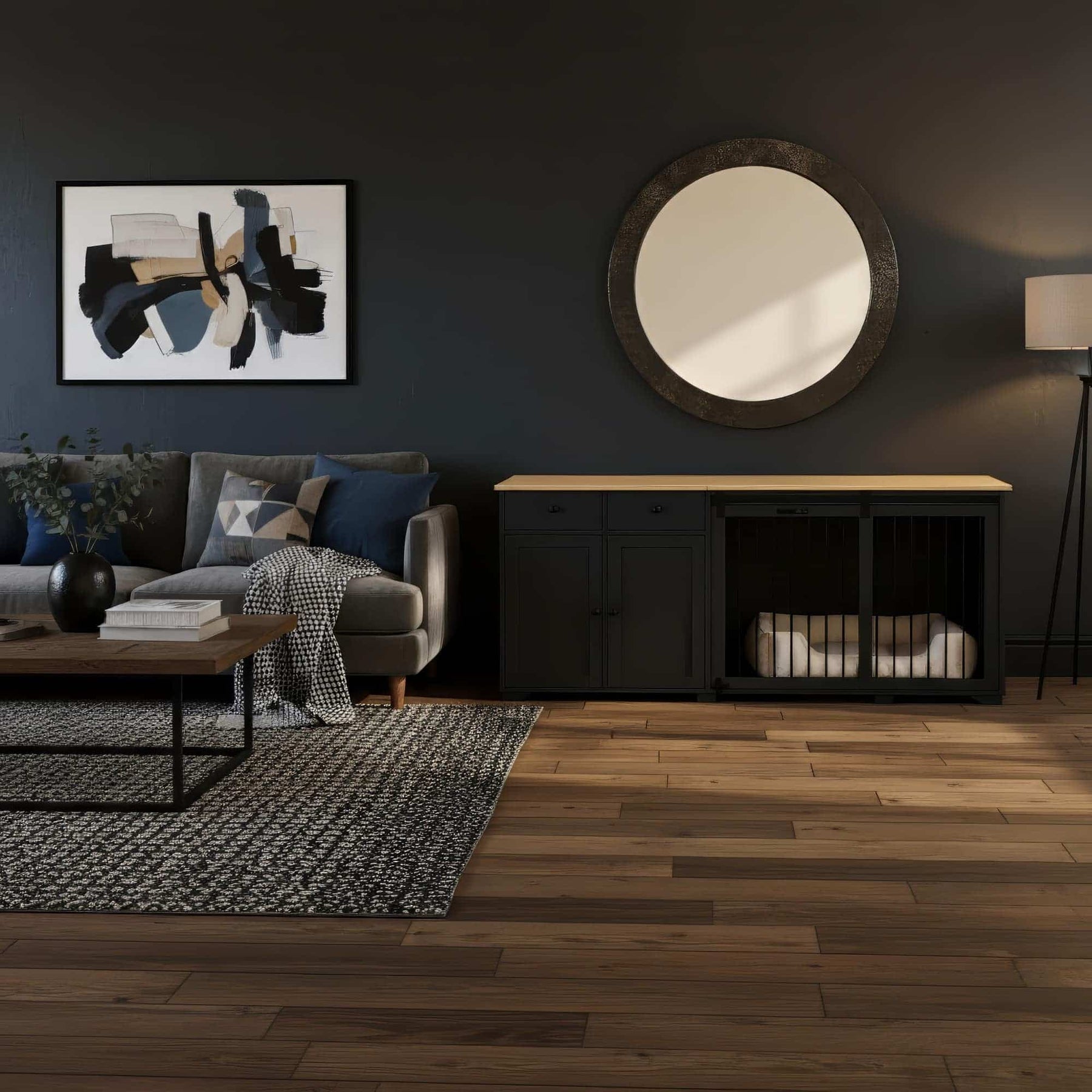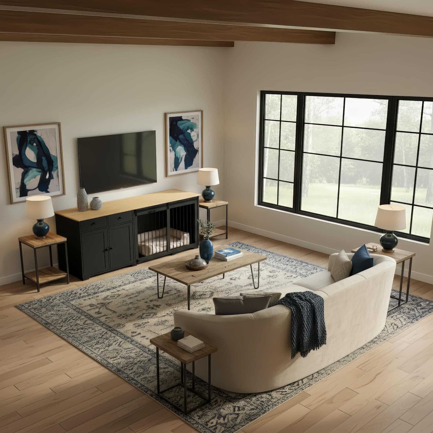 The Hestia Crate unites architectural poise with purposeful design, pairing a contrasting two-tone finish with smooth-glide barn doors and an elevated frame that introduces both balance and breathability. Designed to function as a console, sideboard, or media piece, it anchors any room with clean structure and quiet sophistication while offering your dog a serene, secure retreat. Crafted from furniture-grade wood and iron detailing, it embodies refined durability, transforming a practical necessity into a timeless design element that complements every interior.
