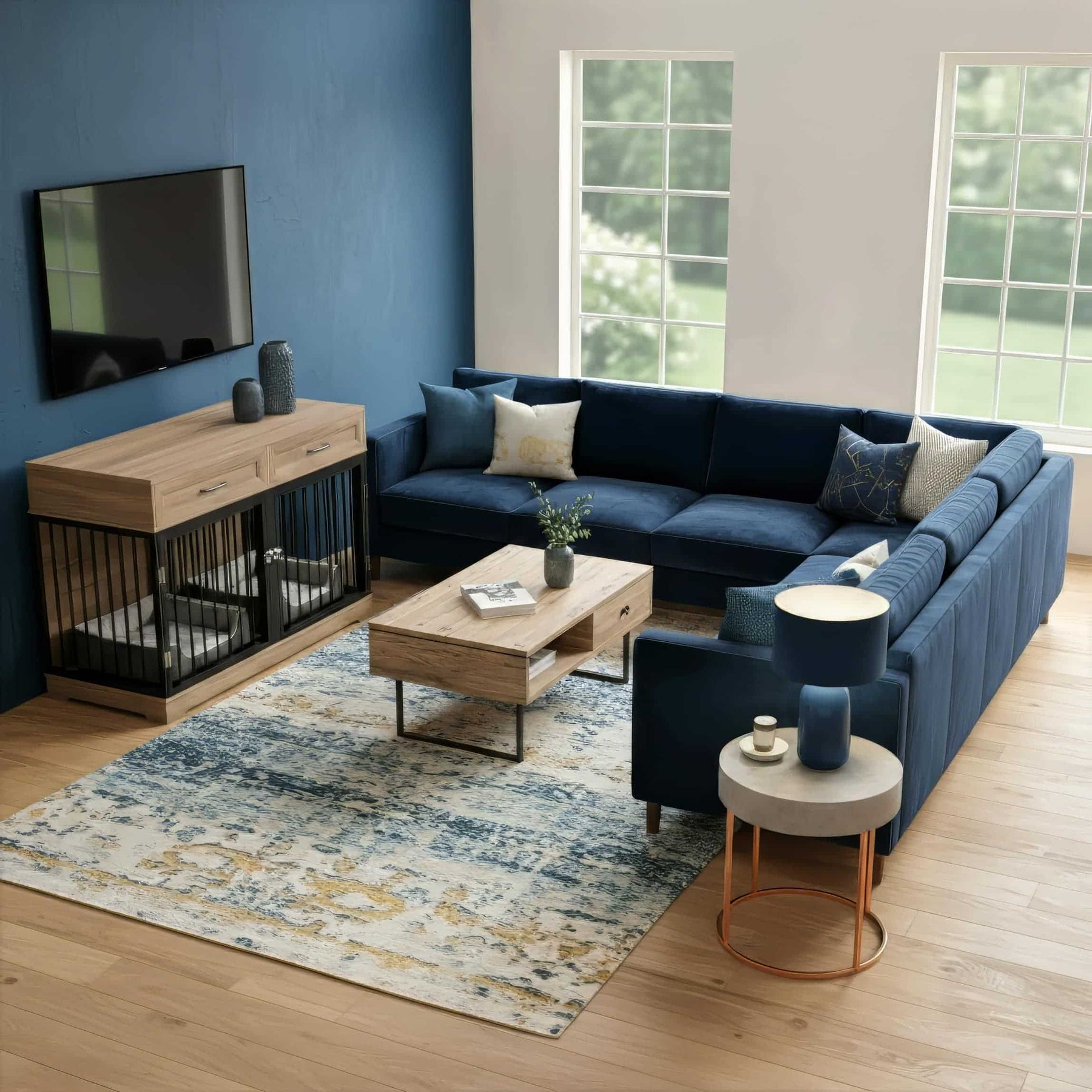 The Elara Crate blends soft lines, integrated storage, and a spacious dual-compartment layout to create a calm, comfortable retreat for your dog while serving as a refined furniture piece. Crafted from furniture-grade wood and reinforced iron, it balances durability with sophistication through smooth-glide drawers, dual doors with concealed latches, and a removable divider that adapts to one or two dogs. Ventilated panels and a wide top surface complete the design, bringing together function, comfort, and architectural elegance that complements modern, transitional, and farmhouse interiors.