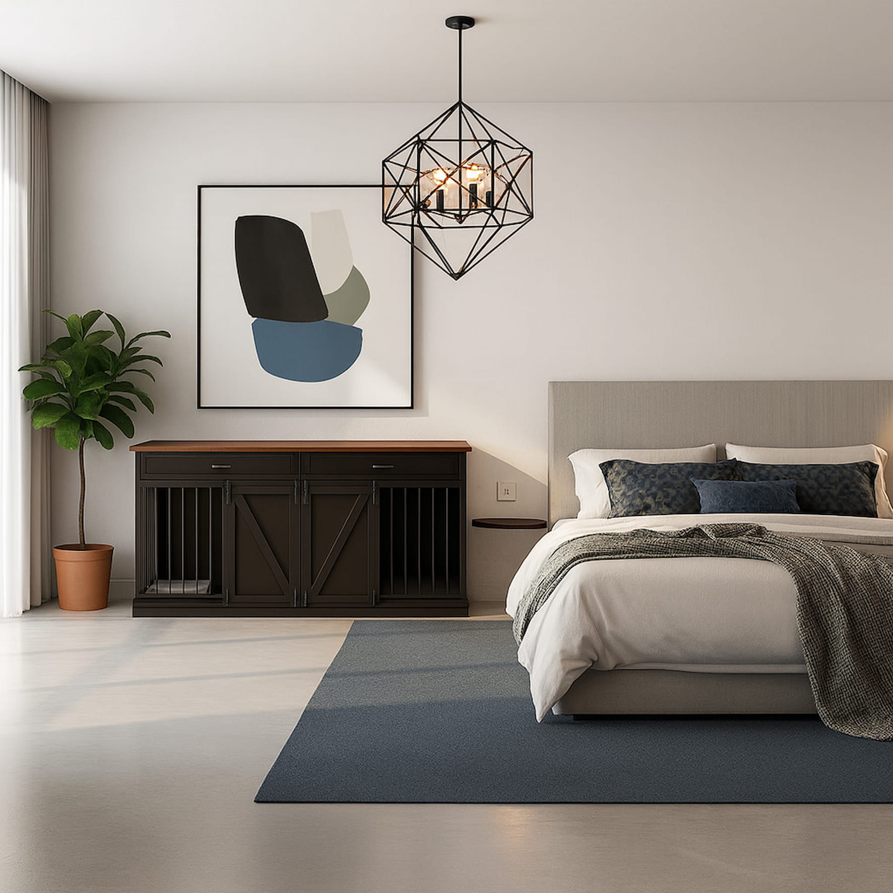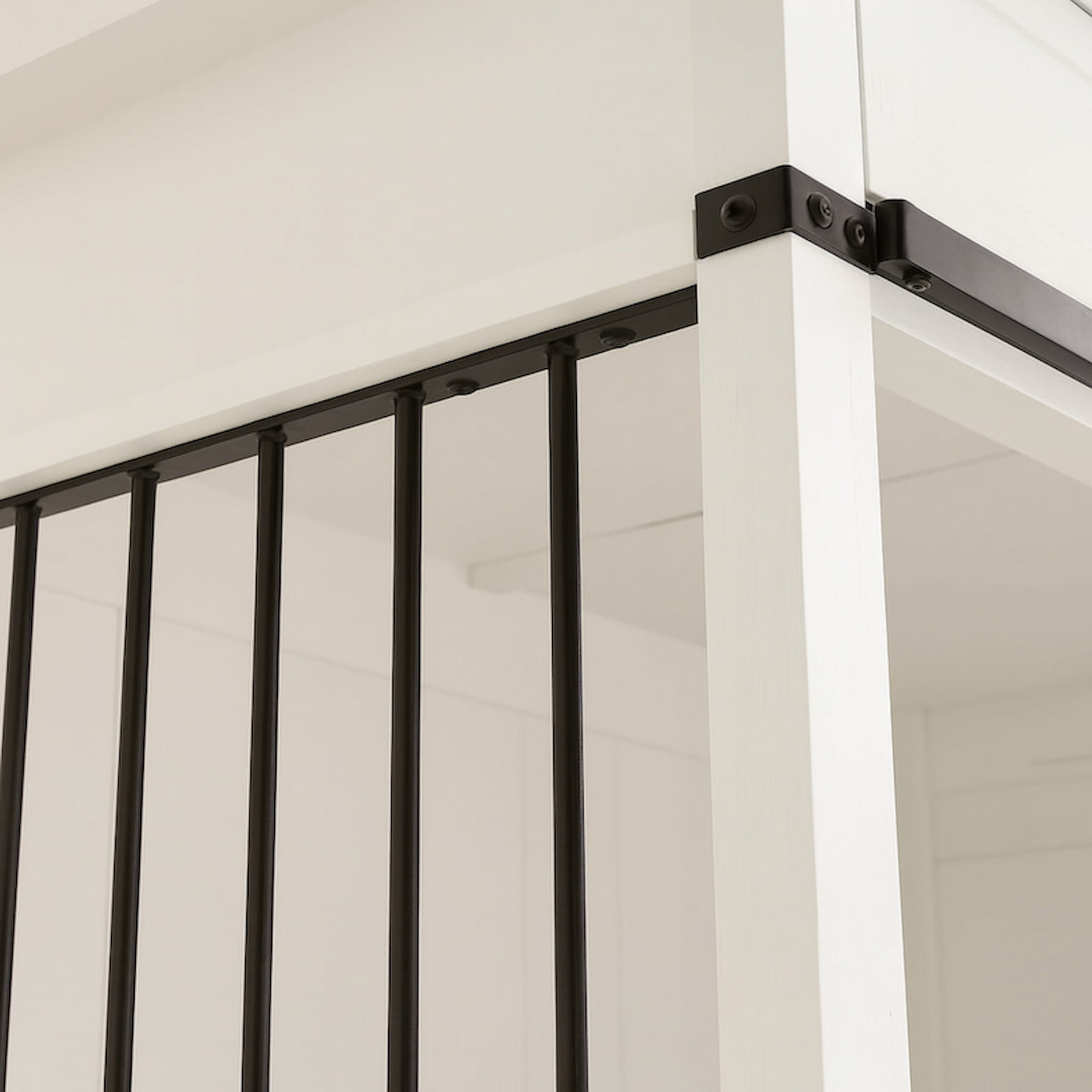 Crafted from engineered wood and thickened iron bars, Ember offers enduring strength and style. The ventilated structure ensures comfort, while the wide top provides a practical surface for décor or daily essentials—making it a versatile piece that enhances your home while keeping your dogs secure and comfortable.