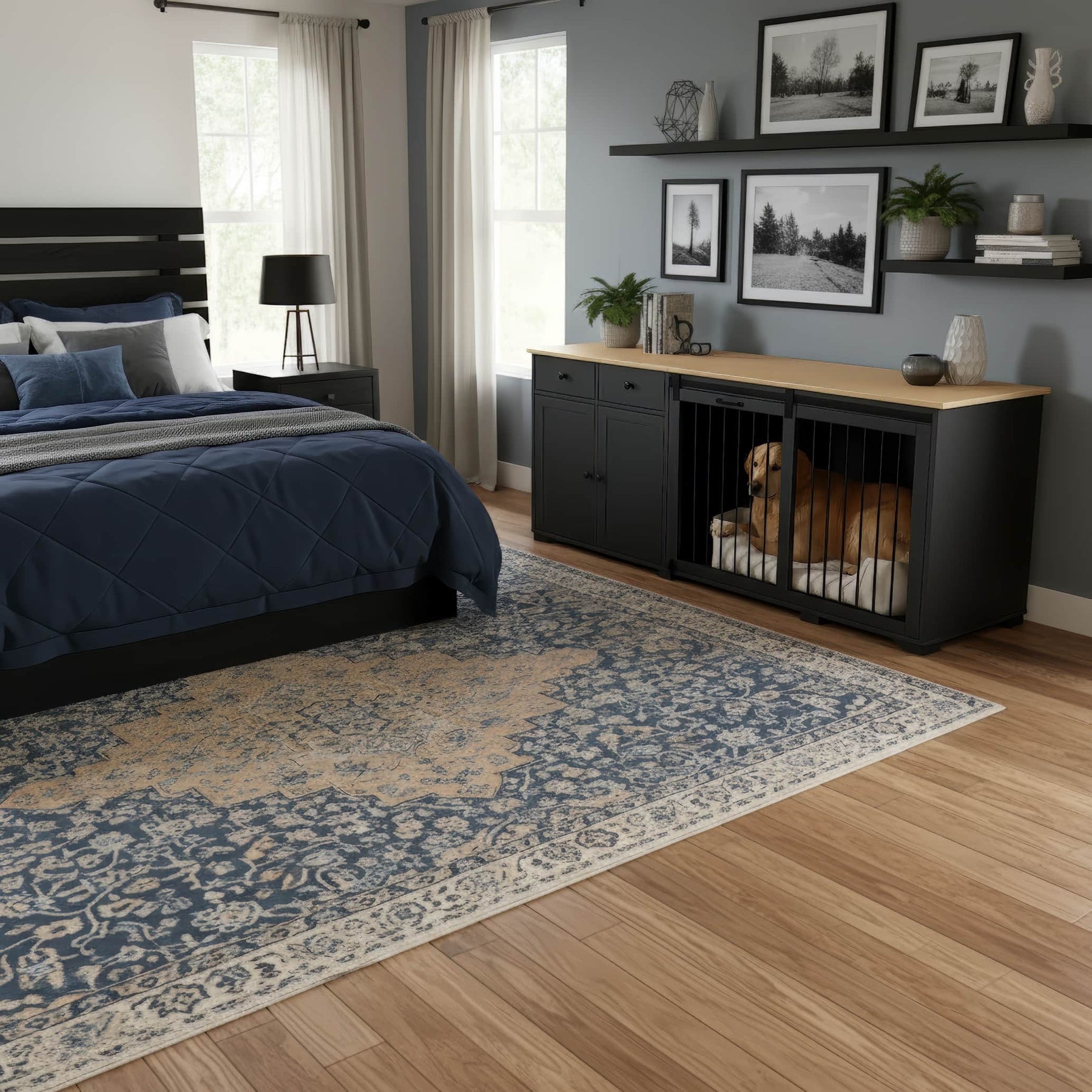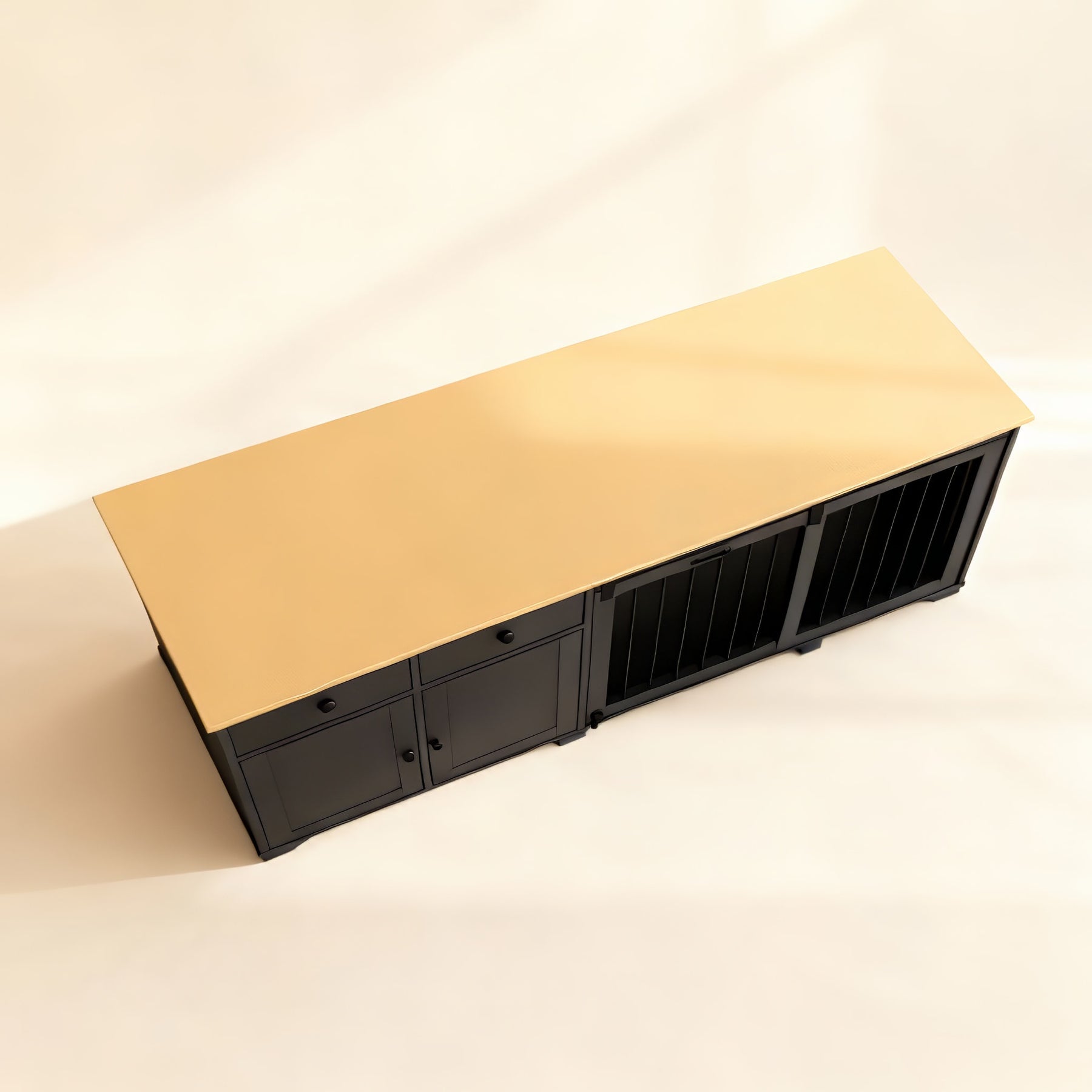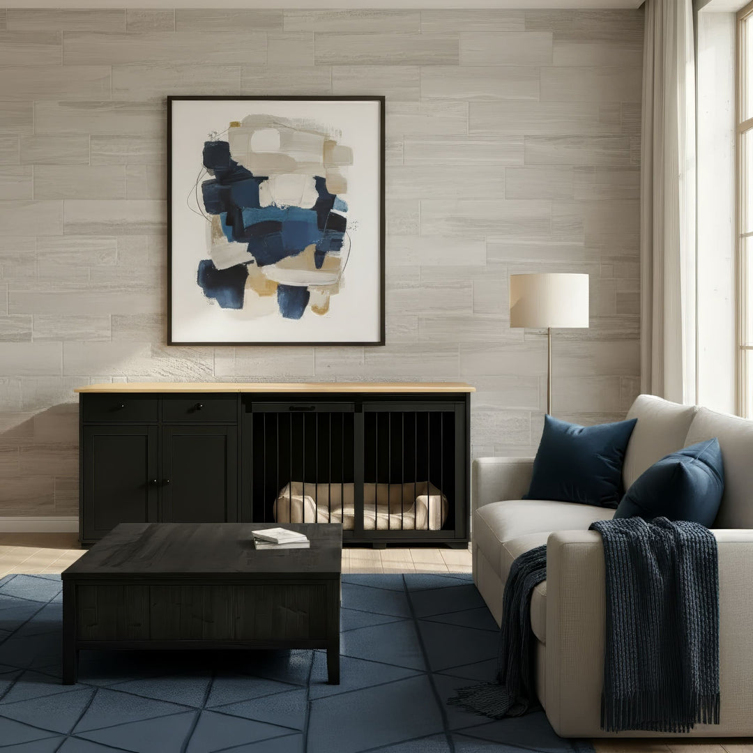Designed to accommodate larger dogs or multiple pups, it blends utility and scale into one seamless piece of furniture.