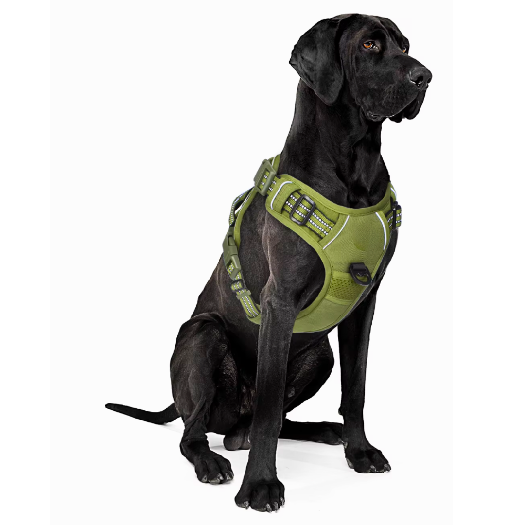 Our Pathfinder Harness offers enhanced control with a reinforced no-pull front clip to reduce pulling, plus a back D-ring for regular walks.