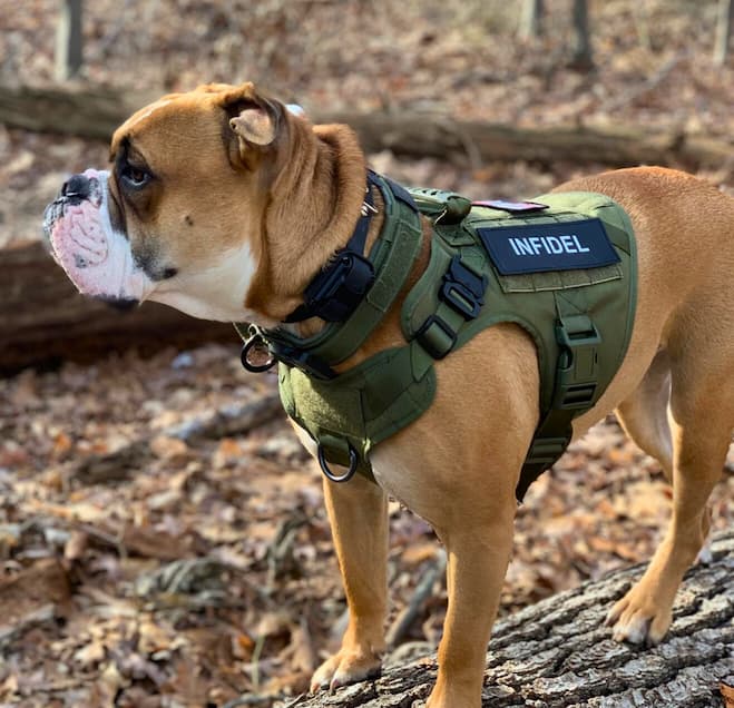 Our Recon Harness is designed to give you more control with a reinforced no-pull front clip on the chest to stop pulling, as well as a second D-ring attachment on the back for regular walks.