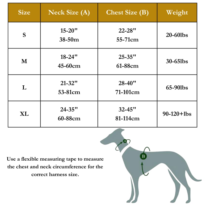 First, you need to measure your dog and get the key measurements (Neck and Chest). Then you can compare it with the size chart we provided in the product description