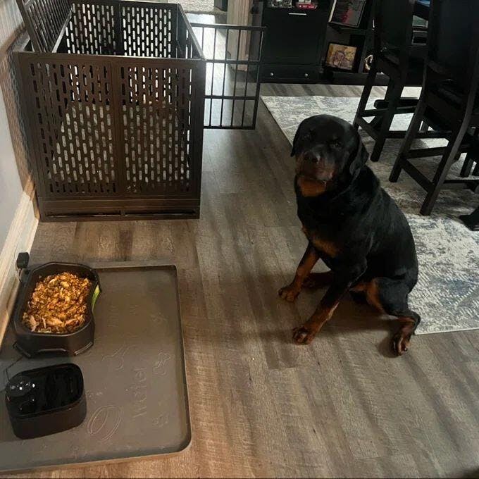 Integrated locking casters allow the crate to be moved easily when needed and secured firmly in place during use. Front access doors with secure locking mechanisms provide straightforward entry and interaction while maintaining containment. A removable slide-out tray supports routine cleaning and maintenance without disrupting the crate’s structure.