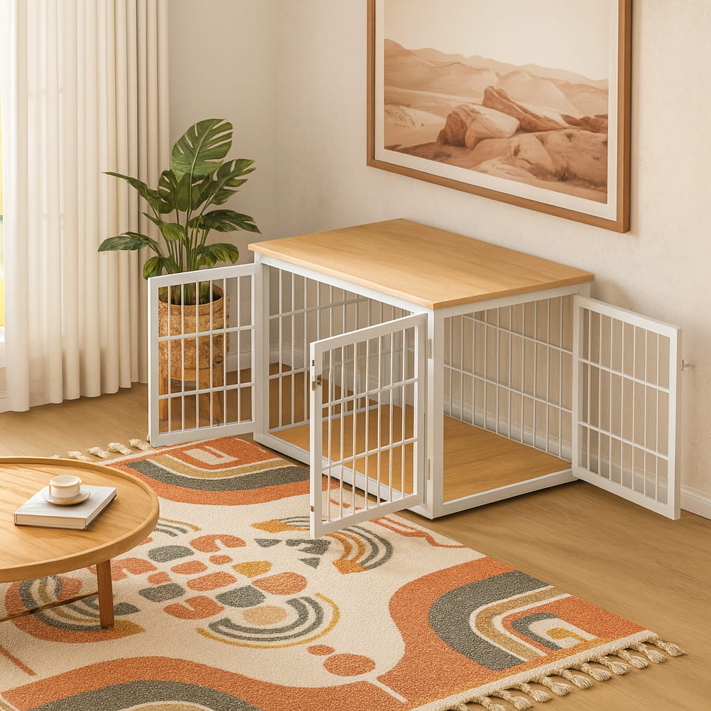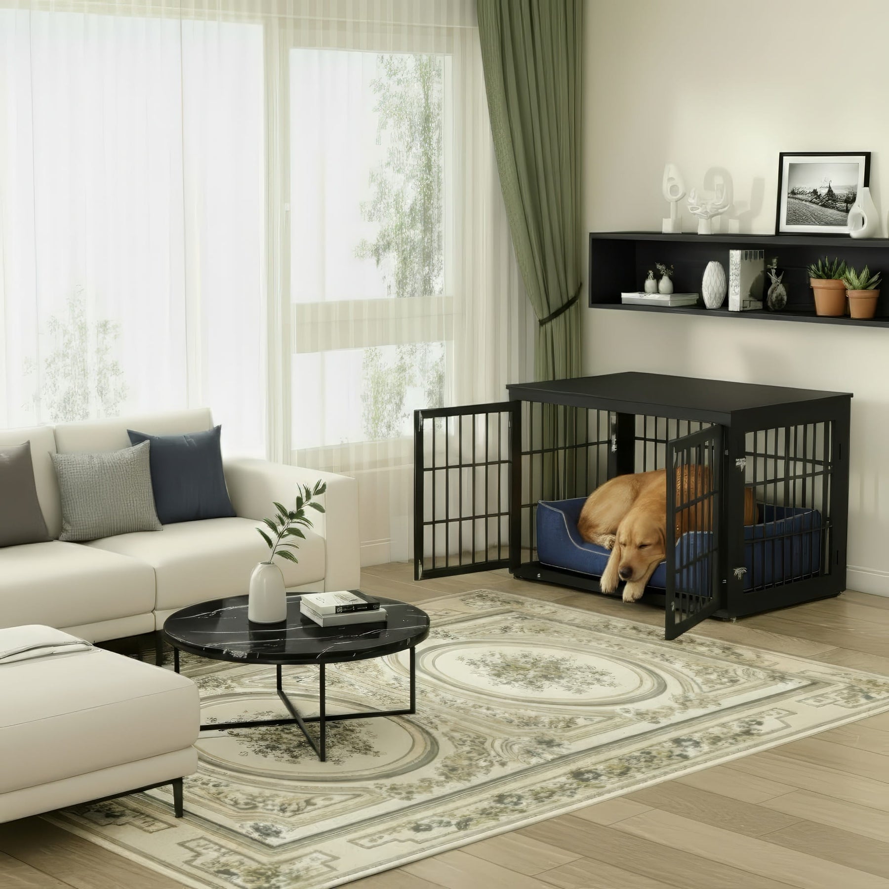 Surrounding bars allow for excellent airflow and visibility, helping your dog feel calm and connected. Cleanup is simple—just open the doors and wipe down the interior for a fresh, comfortable space.