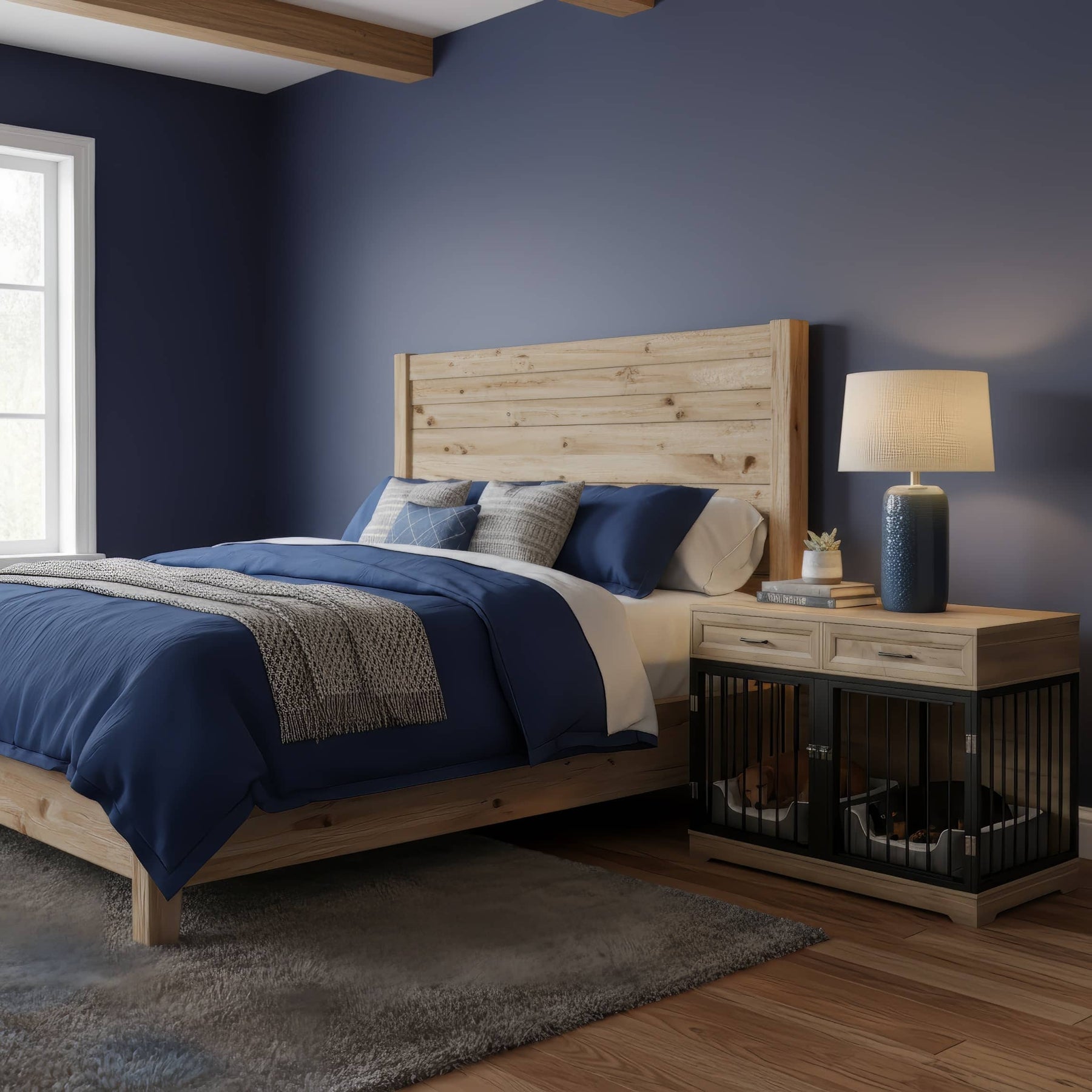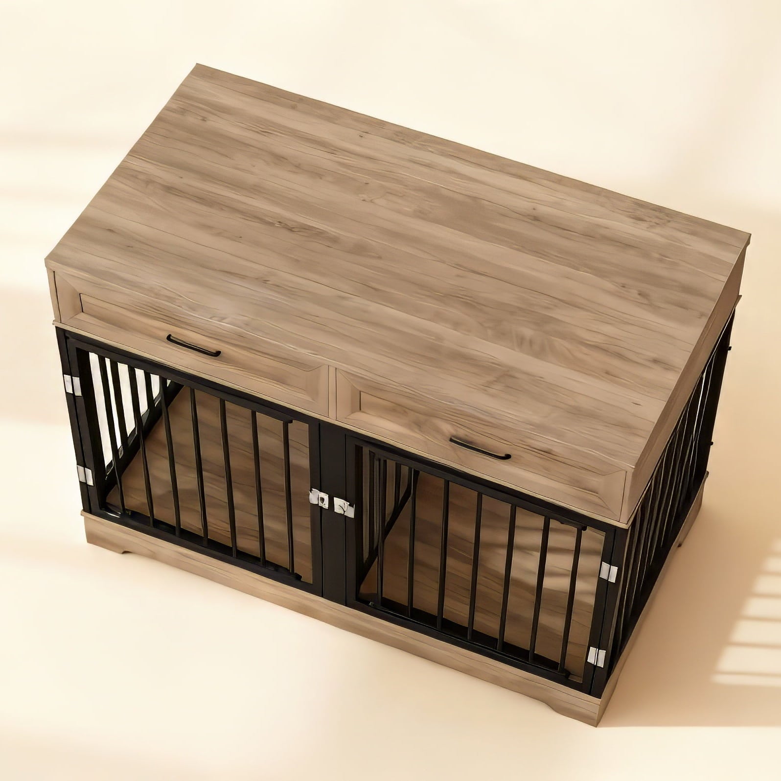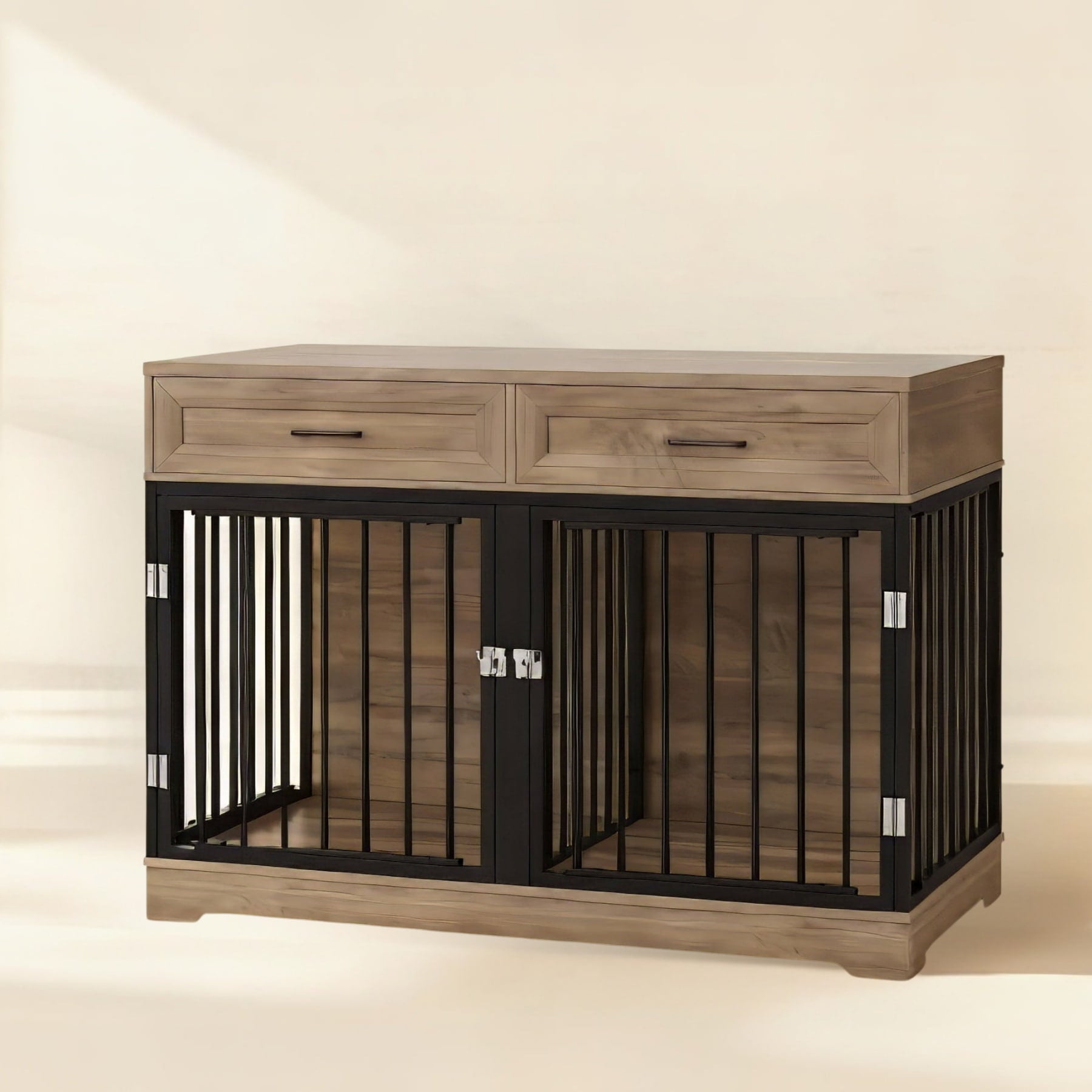 Two upper drawers offer built-in storage for toys, leashes, and essentials—keeping your space organized and your dog's needs within reach. Smooth glides and minimalist hardware maintain a clean, elevated look.